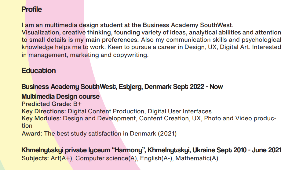 Maria Grysevych Who I am My resume (CV) Presentation My video CV My Business card My Resume (CV) My apps & websites Private school “Harmony” Longhorn BBQ competition Student’s job App My graphic works Logo of International day Halloween party advertising Auto portrait